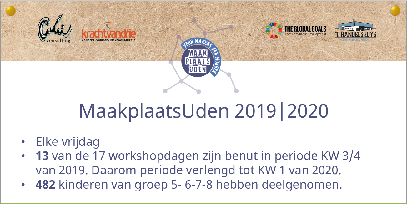 Maakplaats Uden is een maak- en doeplaats voor de makers van morgen. Waar onderzoeken, experimenteren en maken werkwoorden zijn. Maakplaats Uden wil bijdragen aan het versterken van duurzame makerseducatie met een ondernemende makersmentaliteit. Waarin circulair en duurzaam denken en doen voor jong en oud concreet wordt. Waar gebouwd wordt aan een betekenisvol en duurzaam ecosysteem, door krachten te bundelen, samen te leren en verbindingen tot stand te brengen.